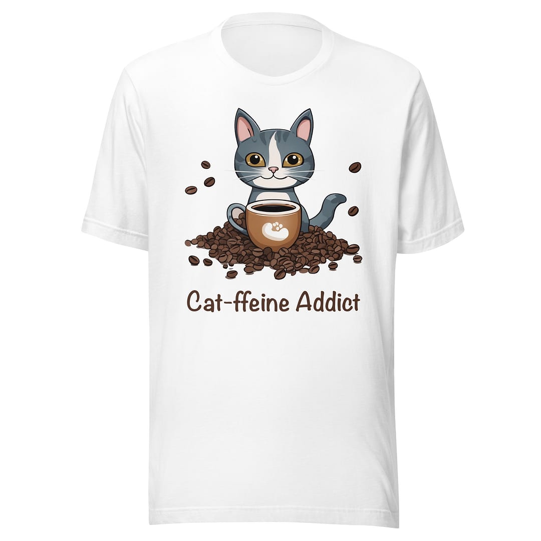 Embrace your inner “Cat-ffeine Addict” and let your sense of humor shine through with this amusing t-shirt. Whether you wear it to your favorite coffee shop, a casual gathering, or simply while lounging at home with your furry friends, you’re sure to spread smiles and laughter wherever you go.